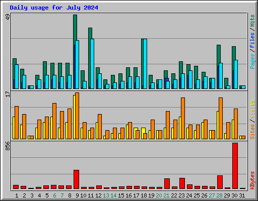 | Day | Hits | Files | Pages | Visits | Sites | KBytes | ||||||